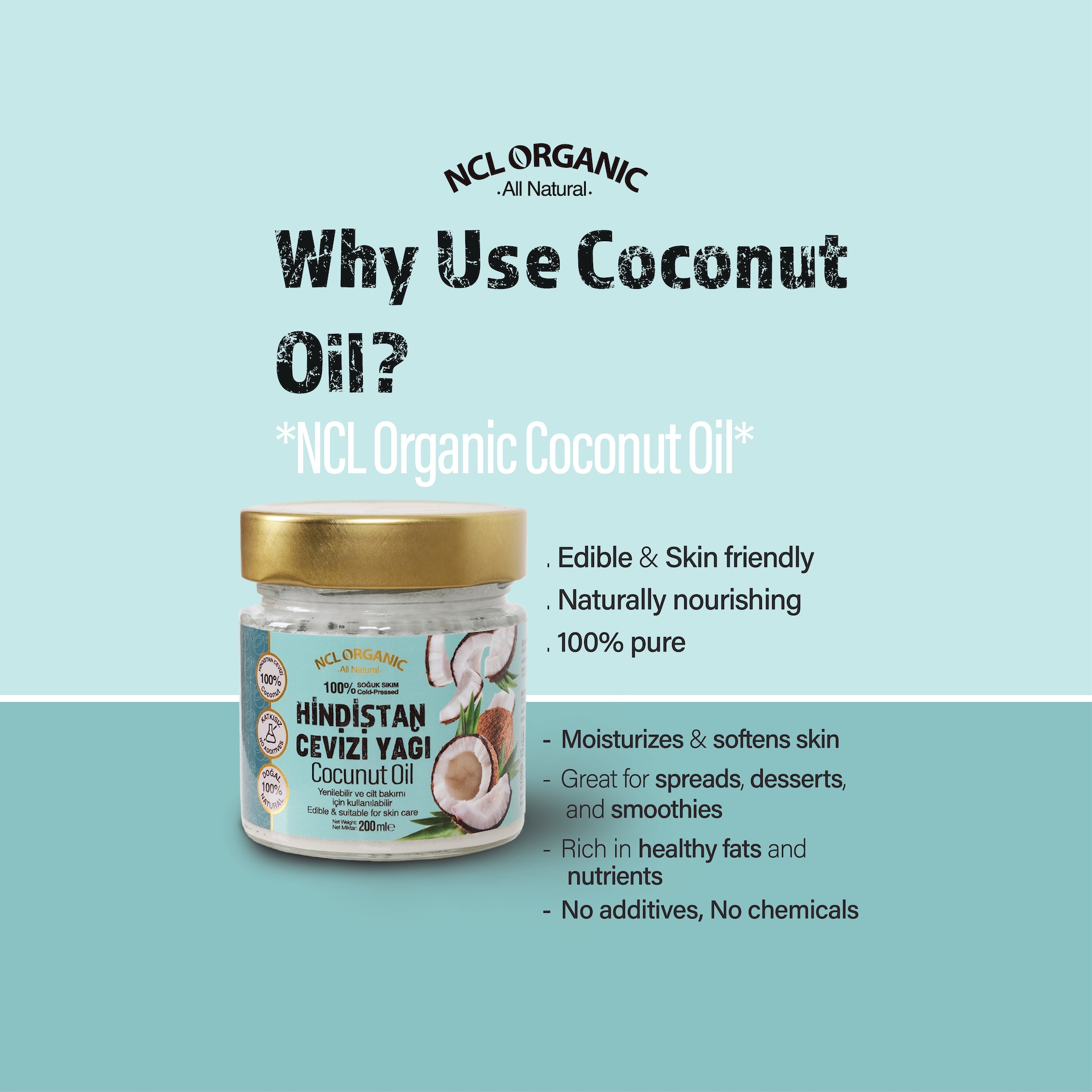 Home KAKAO -COCOA - Hindistan Cevizi - Coconut NCL Organic 100% Hindistan Cevizi Yağı 200ml – Coconut Butter – زيت جوز الهند