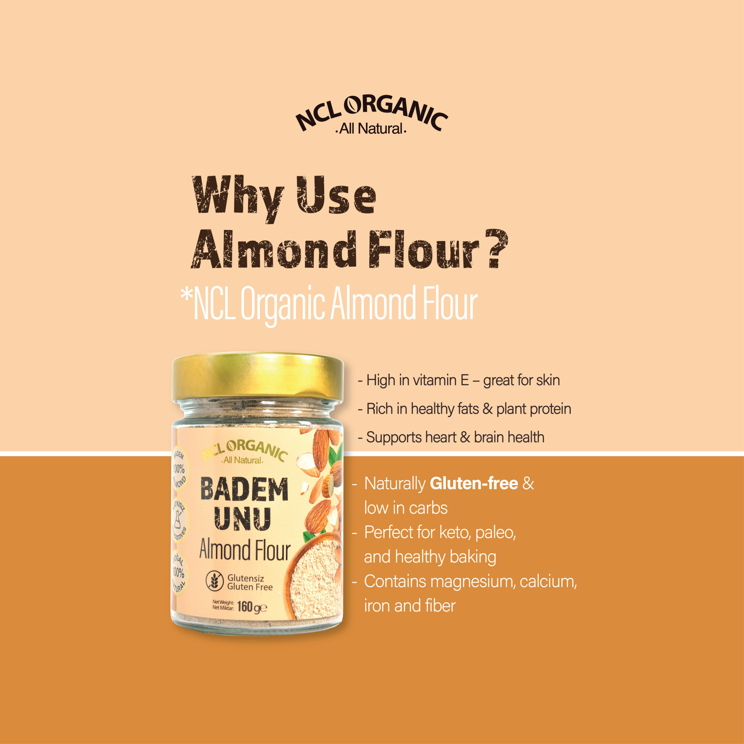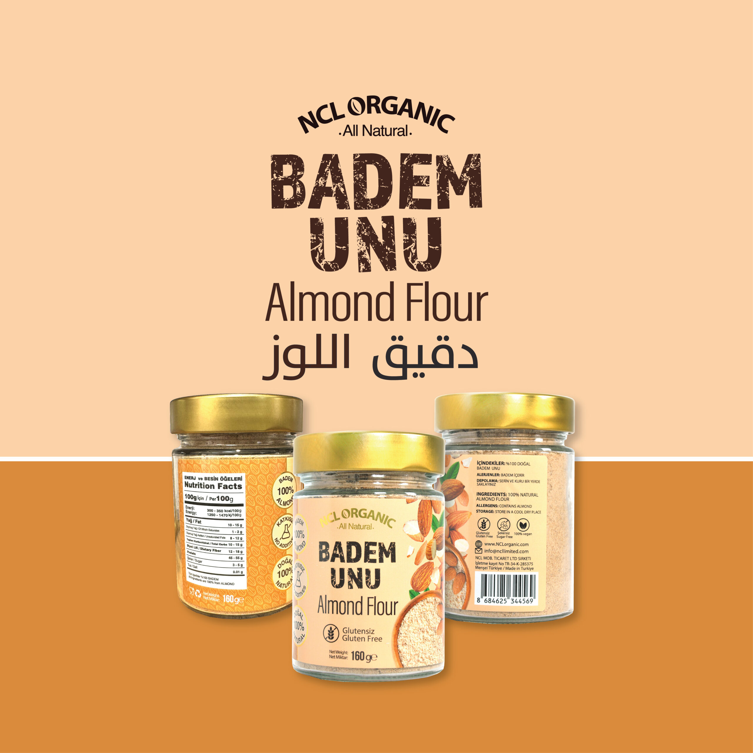 NCL ORGANIC Badem Unu Glutensiz 160gr 100% Natural – Almond Flour دقيق اللوز